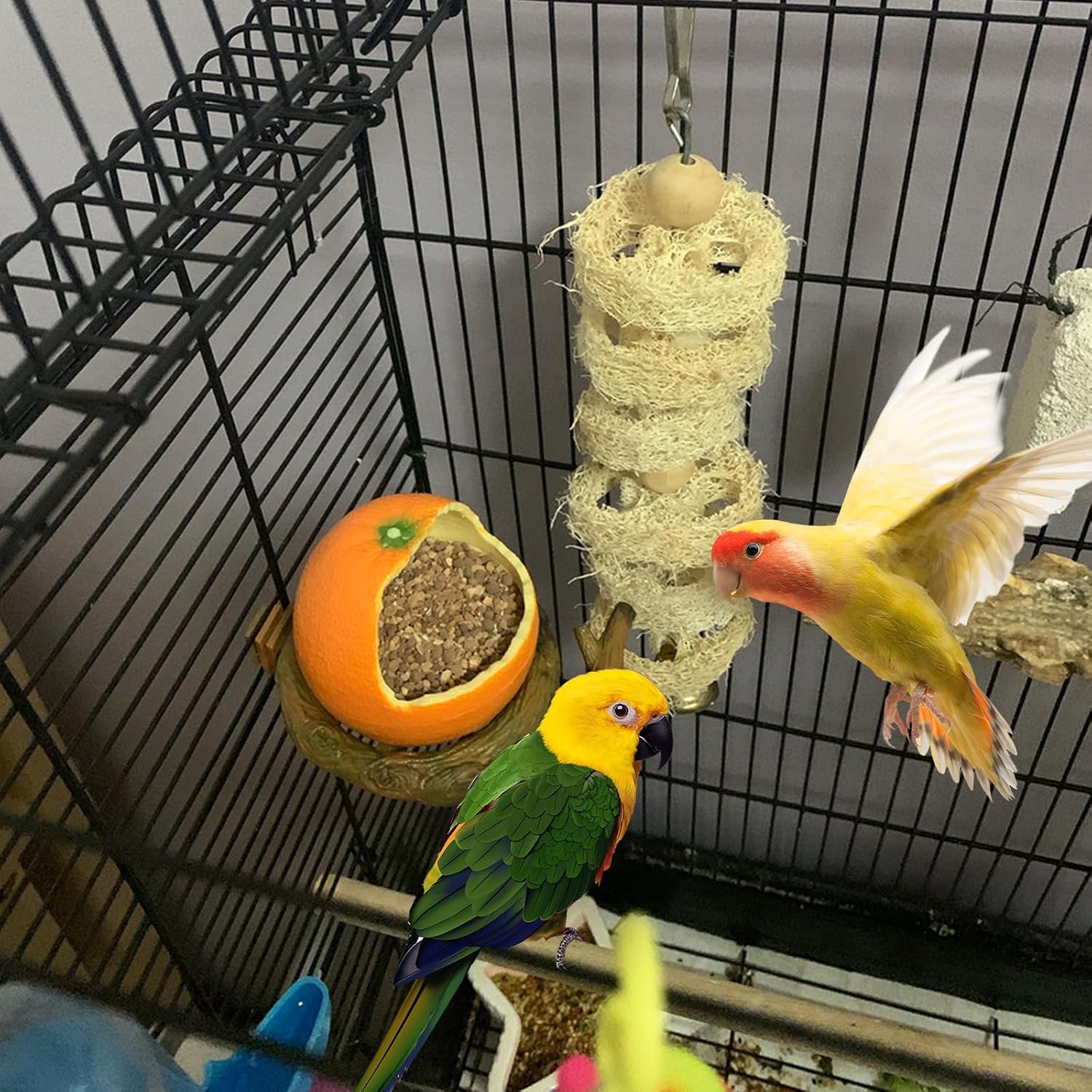 Satiskid Bird Feeding Dish Bird Water Bowl Bird Cage Feeder Hanging Seed Food Container,No Mess Bird Feeder Cage Accessories for Parrot Budgie Lovebirds Cockatiel Parakeet Cockatoo (Orange Tangerine)