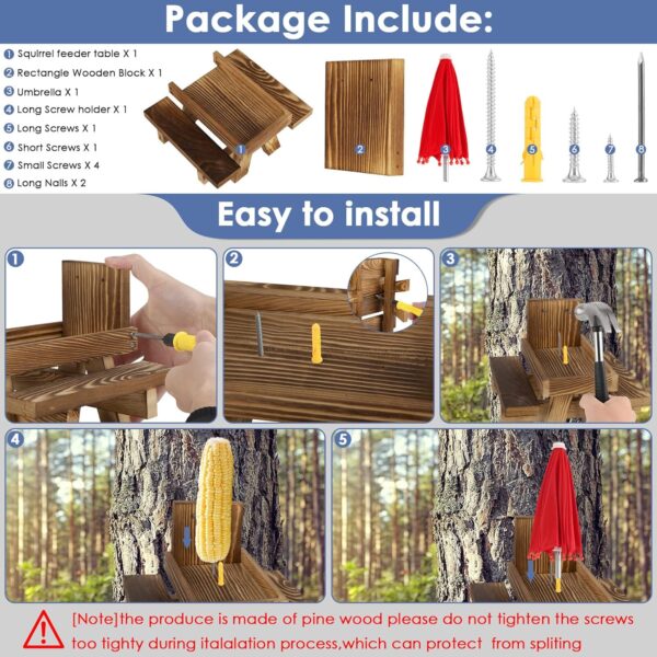 Squirrel Feeder Table with Umbrella, Wooden Squirrel Picnic Bench Feeder with Umbrella and Corn Rack, Garden Ornaments for Squirrel Chipmunk Wildlife Bird Feeder – Includes Mount Screws