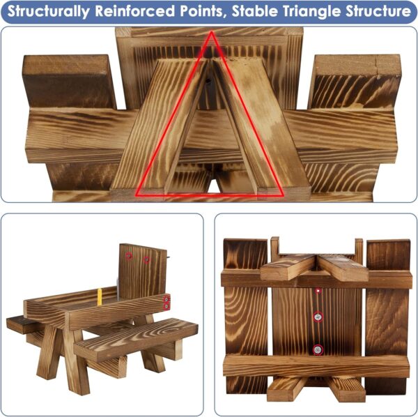 【Unique Gift】The perfect gift for animal or nature lovers. Squirrel feeder table and stand can also attract more cute little animal tourists to sit on the small benches and enjoy the food. The squirrel picnic bench feeder is suitable for feeding squirrels, chipmunks, small birds, etc.