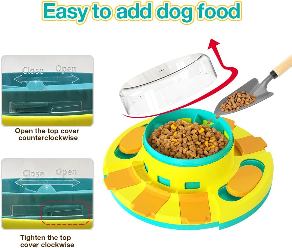 ?【Easy and Quick to Use】Open the transparent cover of the granary and add dog food or snacks directly into the granary. When the dog uses this toy for the first time, his owner can hold his paw to play, by repeatedly pressing the top cover of the transparent granary for several times, and then open the lid of the leaky box or move the sliding lid to get food as a reward. At the beginning, the owner needs to guide his dog to learn to use this product.