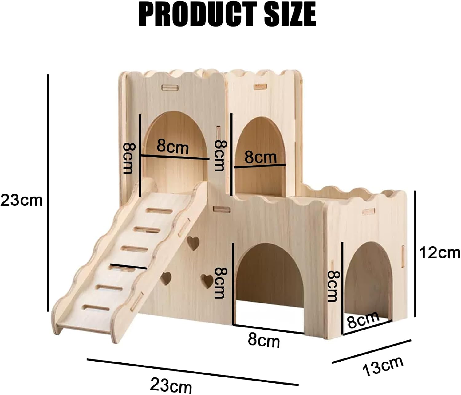 Size: 23X23X13 cm. Suitable for Syrian hamsters, Dwarf hamsters, Chinchillas, rats, and other small furry animals.