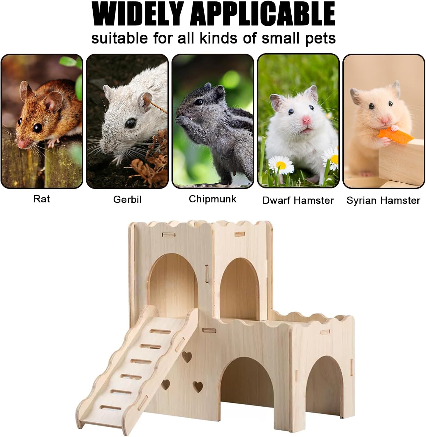 TOKAYIFE Hamster House, Wooden Pet Small Animal Hideout Hut, Natural Living House Cage Décor for Syrian Hamsters Dwarf Hamster Gerbil Rat Chipmunk (MZ-135)