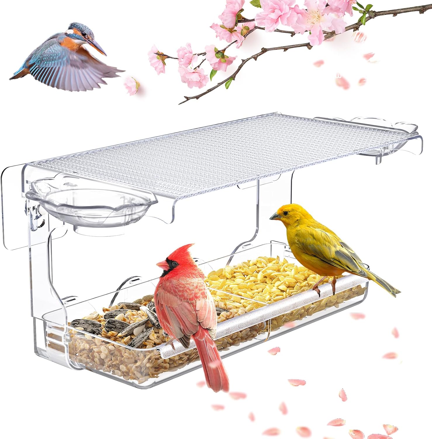 WELDUN Window Bird Feeders for Small Birds with 2 dividers, Clear Bird Feeder Bird House Outside Wild Bird Watching for Garden, Yard, Elderly Kids Viewing