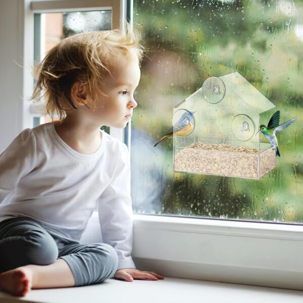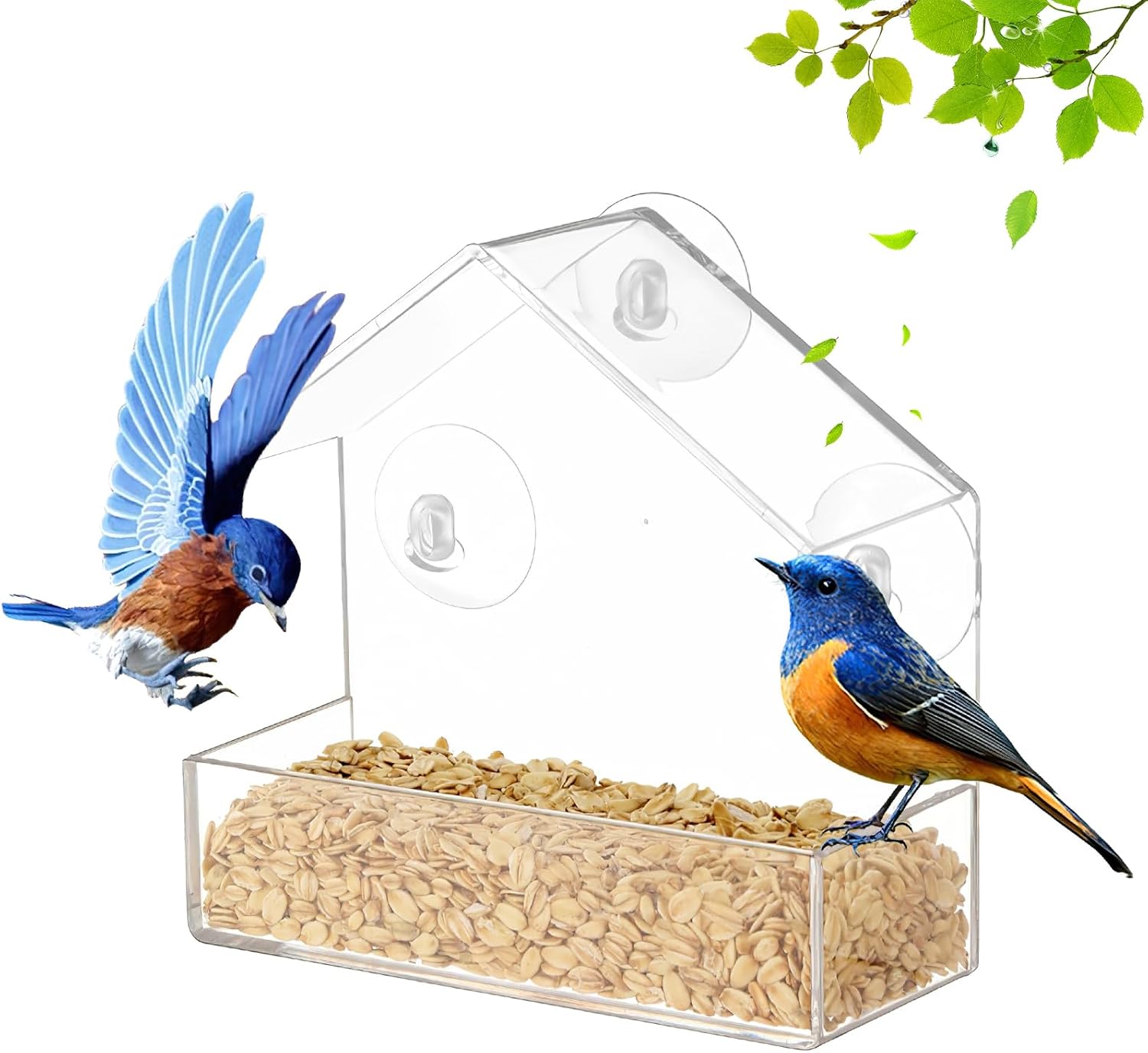 Window Bird Feeders,Window Bird Feeder with Strong Suction Cups,For Bird Watching Bird Feeders for Small Birds Squirrel Proof Bird Feeder Window,Transparent Birdhouse Shape Design.