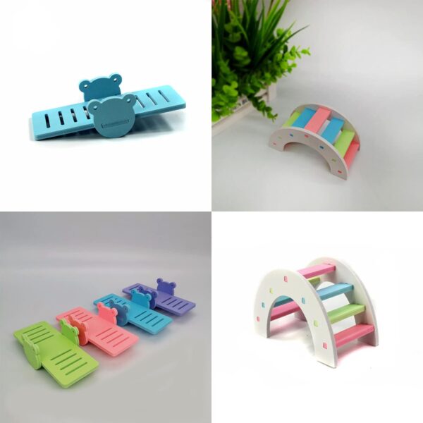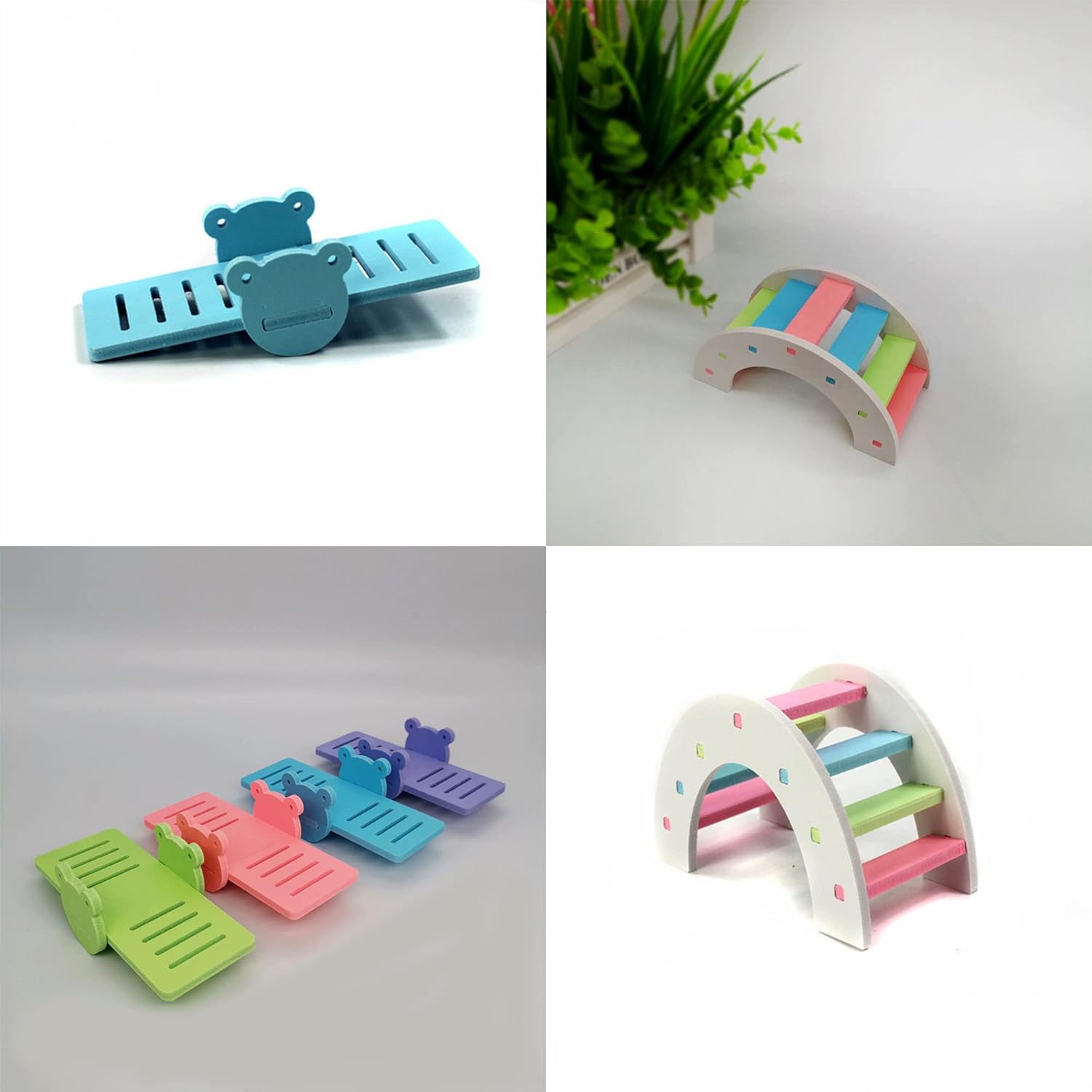 ?【3 PCS TOY SET】- You will receive 3 pieces of hamster toys, rainbow house, colorful arch bridge, seesaw, help you create a playground for your pet to play and a house to sleep, promoting exercise and keep your lovely pets healthy.