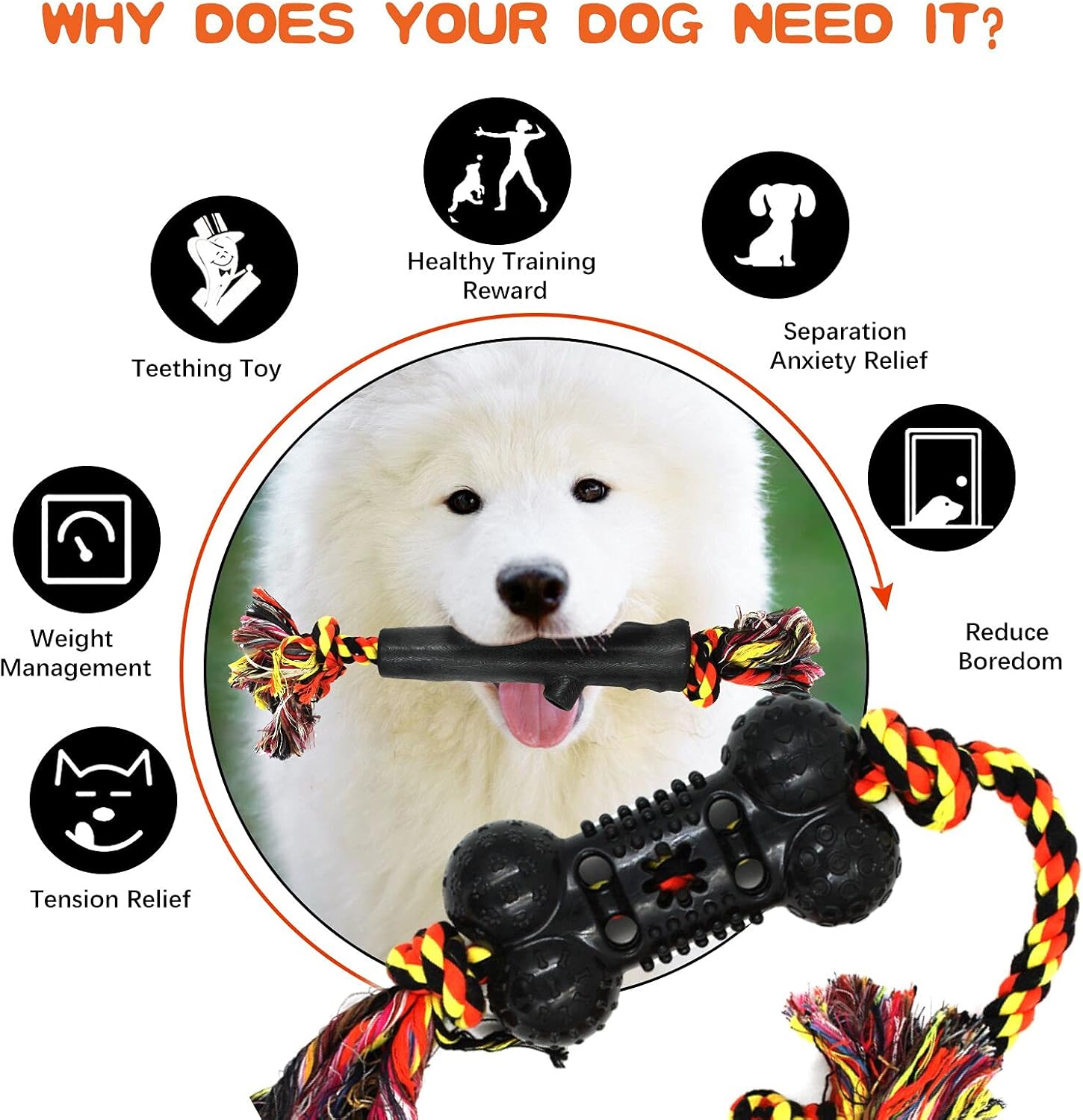 Yipetor Durable Dog Chew Toys, Rubber Bone Toy Set, Pet Cotton Knot Rope, Indestructible, Aggressive, Interactive Tug of War, Puppy Teething, Gift for Small/Medium Dogs (6 PACK)